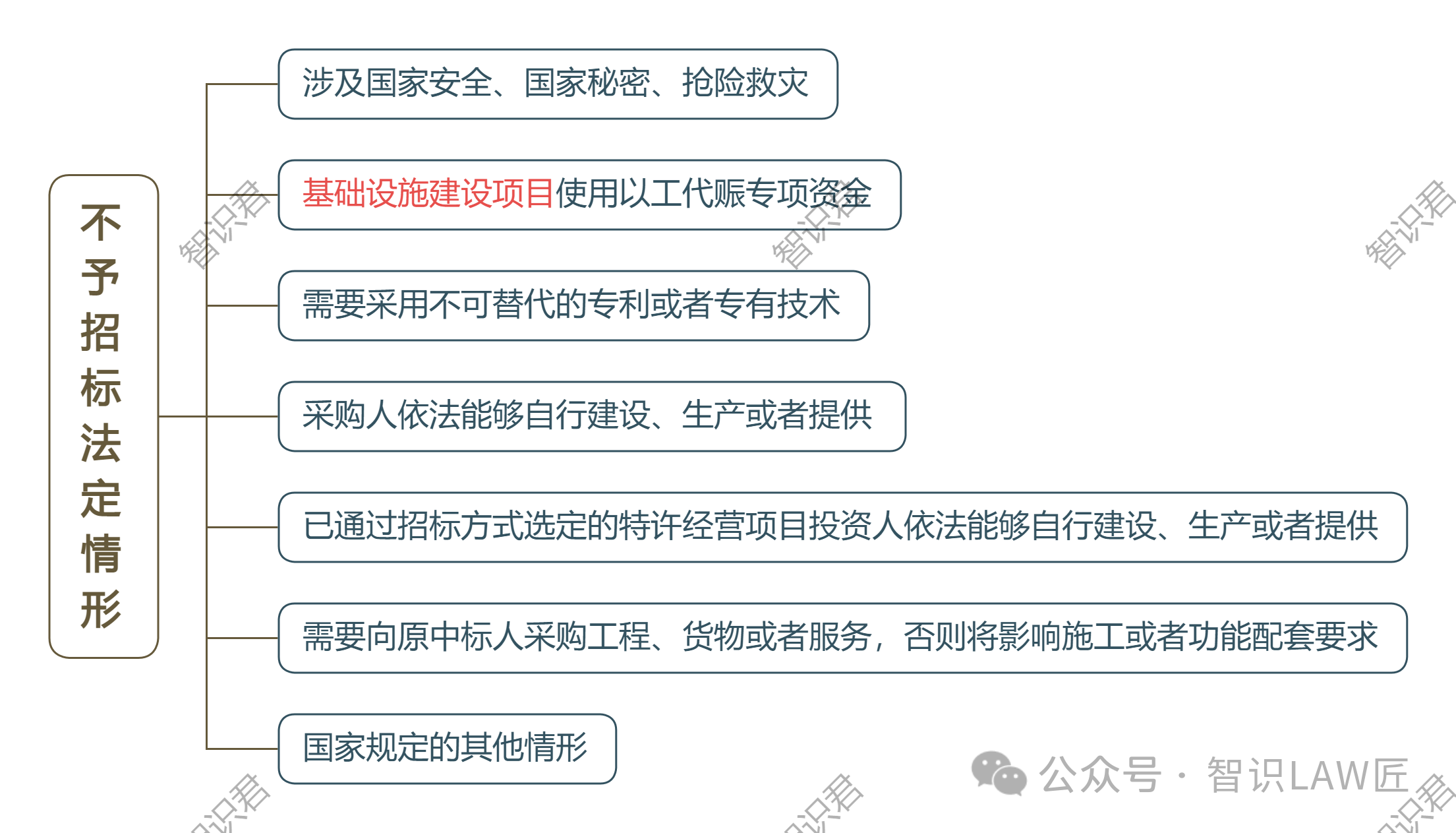《条例》第11条规定了“不予招标”的法定条件,如下图表: