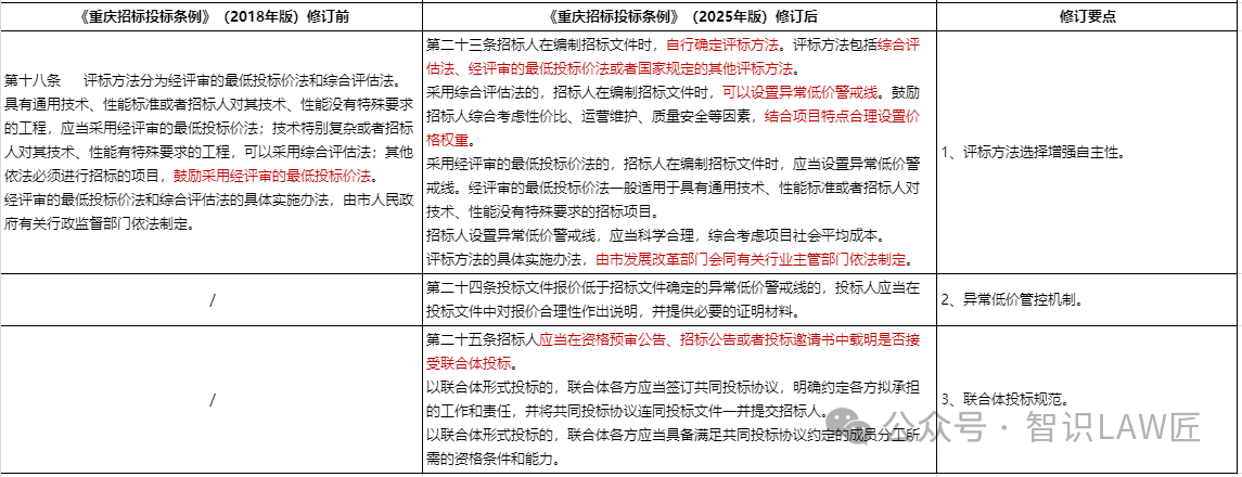 评标方法、异常低价管控机制、联合体投标管理的调整主要为3项,主要是:
