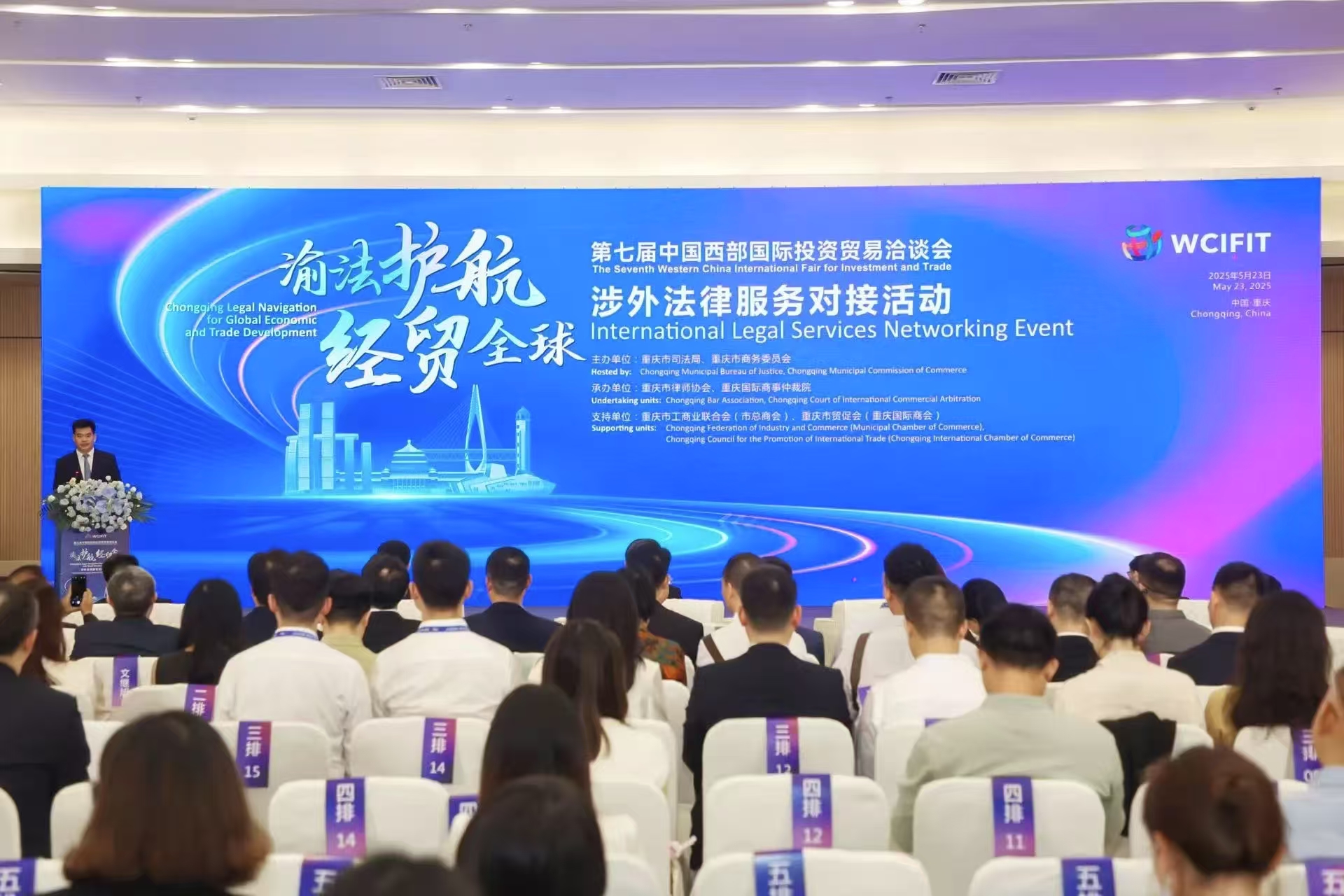 5月23日下午,一场聚焦涉外法律服务的盛会——“渝法护航·经贸全球”涉外法律服务对接活动在重庆国博中心盛大举行。此次活动由市司法局、市商务委员会主办,市律师协会、重庆国际商事仲裁院承办,吸引了众多法律界、商界人士的关注。