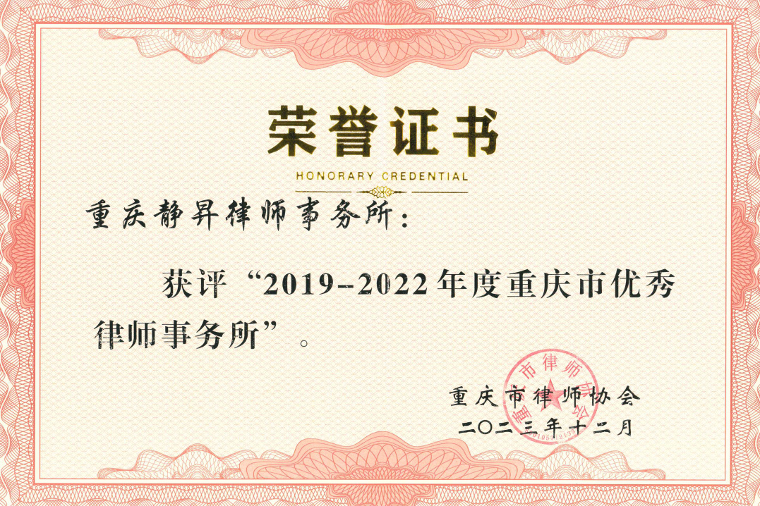 会上公布了由重庆市司法局、重庆市律师协会评选的“2019—2022年度重庆市优秀律师事务所”评选结果,重庆静昇律师事务所榜上有名,第六次获得该荣誉称号。