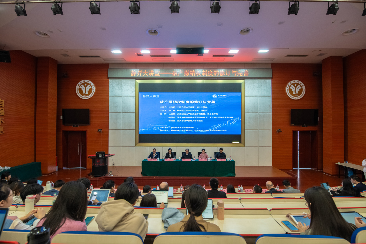 11月9日下午,一场聚焦破产法领域前沿议题的高端学术盛宴在西南政法大学成功举行。本次讲座以“破产撤销权制度的修订与完善”为主题,特别邀请了中国人民大学教授、博士生导师,同时也是中国破产法论坛组委会主任、最高人民法院《企业破产法》司法解释起草组的专家顾问——王欣新教授作为主讲嘉宾,为在场听众带来了一场思想碰撞与知识启迪的精彩演讲。