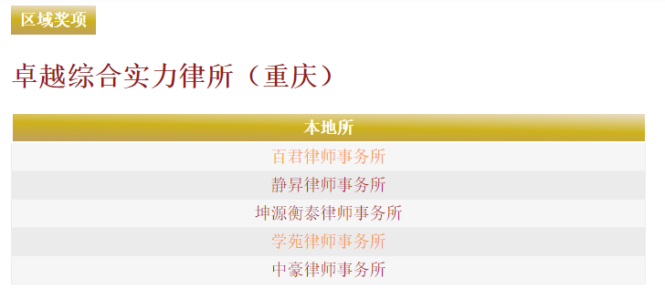 2025年10月13日,国际权威双语法律媒体《商法》(China Business Law Journal)正式揭晓2025年度“卓越律所大奖”区域奖项获奖名单。重庆静昇律师事务所凭借在本地法律服务市场的卓越表现、扎实的专业实力以及客户与业界的高度认可,再度荣登榜单,荣获重庆区域“卓越综合实力律所”称号。这是静昇所连续第四年获此殊荣,标志着其在区域法律服务领域的领先地位持续巩固,品牌影响力与专业口碑再获权威认证。