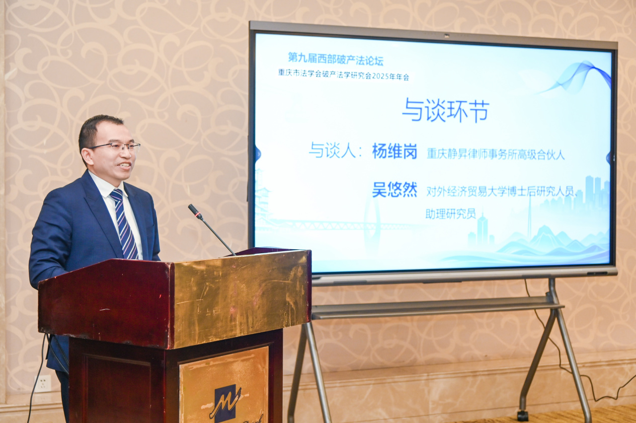2025年11月28日,第九届西部破产法论坛暨重庆市法学会破产法学研究会2025年年会在重庆隆重召开。本次论坛由西南政法大学与重庆市法学会破产法学研究会联合主办,重庆静昇律师事务所等单位协办。重庆静昇律师事务所创始合伙人、主任彭静携事务所破产业务团队到场参会。
